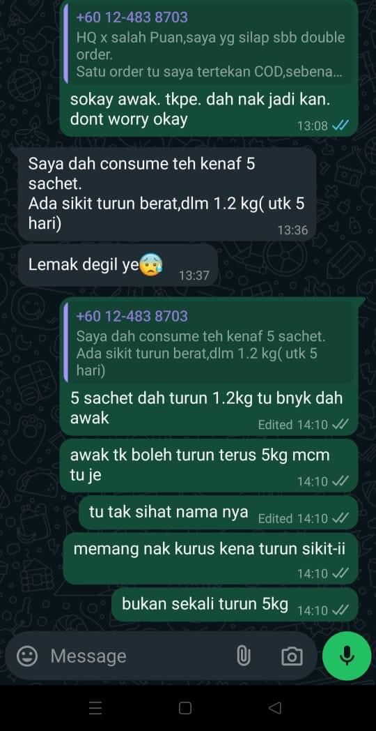 Kesan Dialami Pengguna Biokenaf Seawal 28 Hari Melalui Temubual Whatsapp