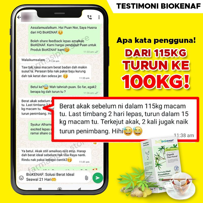 Sebab itu, kami bagi jaminan. Takda siapa pun akan rugi untuk cuba produk BIOKENAF. Cubalah produk ni sekarang. Sekiranya… selepas dah amalkan selama 3 bulan. Kalau tak suka dengan kesan. Rasa tak sedap. Tak suka kotak. Tak suka bau. Tak suka texture. Tak suka dengan apa jua sebab. Pulangkan balik.